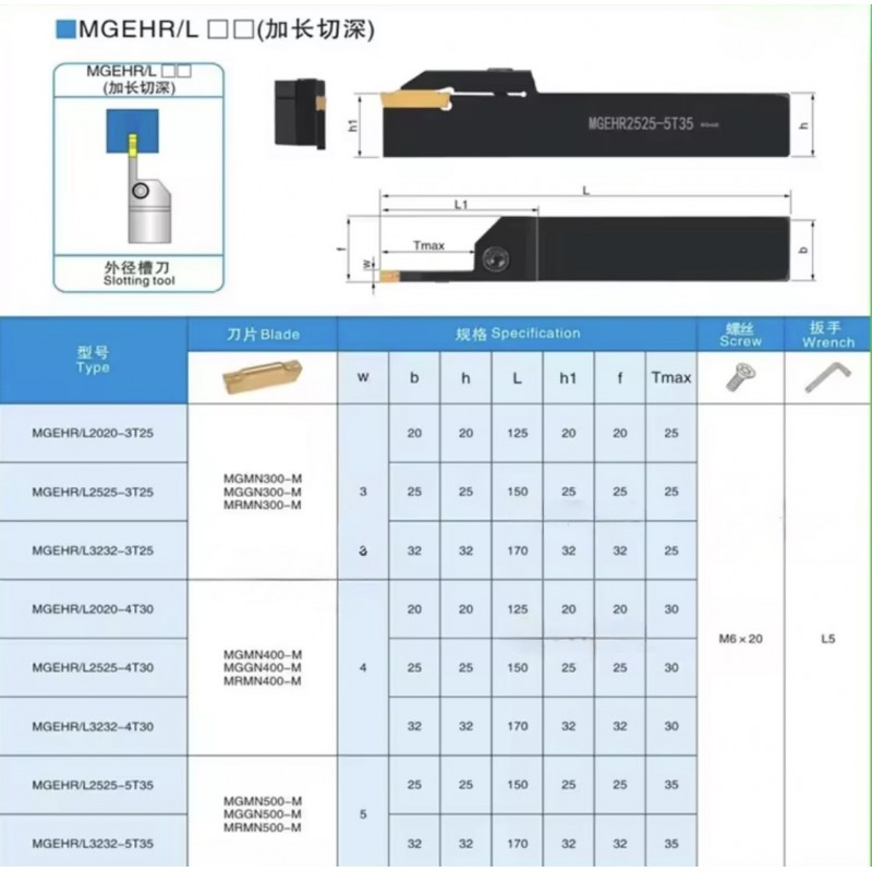MGEHR2020-1.5  Відрізний, канавковий токарний різець (державка)ширина різання 1.5мммаксимальний..